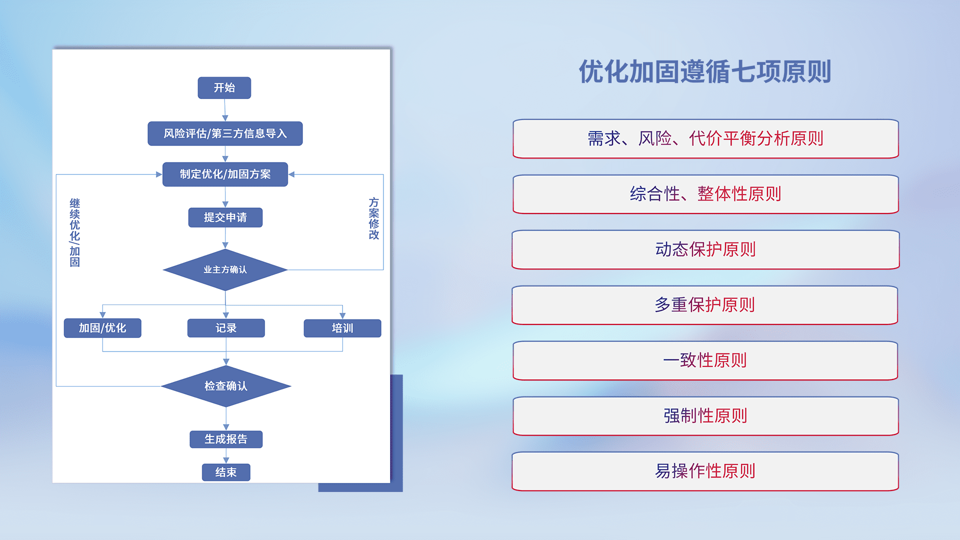 最大程度利用现有资产,,,对评估发现的问题进行封堵与整改,,,,防止漏洞被利用,,,,提升整体网络安全性,,,为客户带来高标准的优化加固服务。。